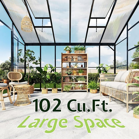 AMERLIFE 12x10x8 FT Hybrid Polycarbonate Walk-in Greenhouse for Outdoors, Aluminum Frame with Quick-Connect Assembly, Double Doors, Ventilation for Backyard Garden, Black