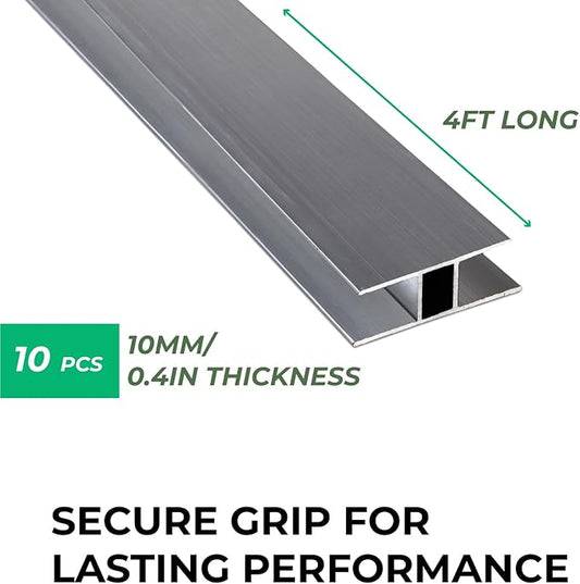 Aluminum H Connectors - Fits 4mm, 6mm, 8mm, or 10mm Twin-Wall Greenhouse Panels, Join 2 Pieces of Panels Together, 4-Foot Length, 10 Pieces (10mm Aluminum H Connectors - 4ft)