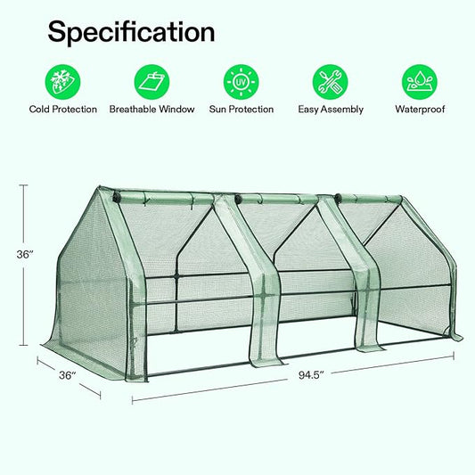 VIVOSUN Portable Mini Greenhouse 94.5x36x36-Inch Tunnels, PE Cover with Roll-up Zipper Door, for Indoor Outdoor or Garden Plant Growing