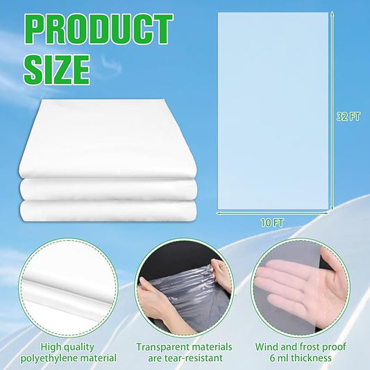 Greenhouse Plastic Film, 6 Mil Thickness Greenhouse Plastic Sheeting, Clear Polyethylene Film UV Resistant for Gardening, Farming, Agriculture (10 x 32 FT)