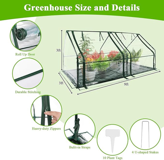 U'Artlines Portable Mini Greenhouse 9x3x3 Ft Small Greenhouse for Outdoors with Waterproof Pad, Little Green Houses Plant Cover Tent for Outside Garden Small Plants, Clear PVC