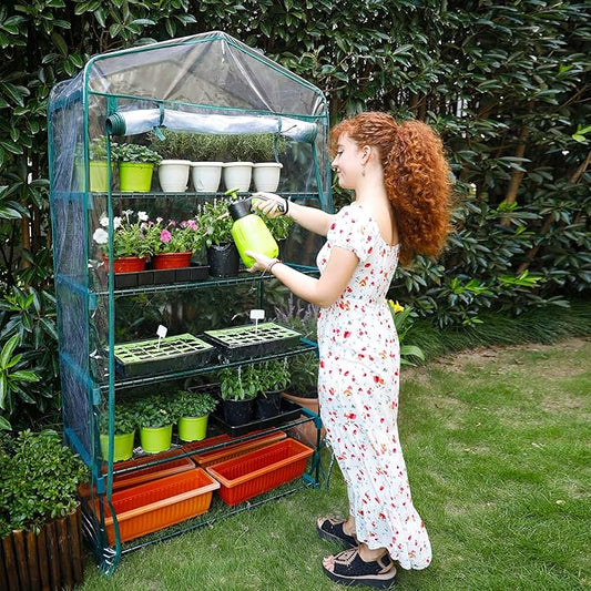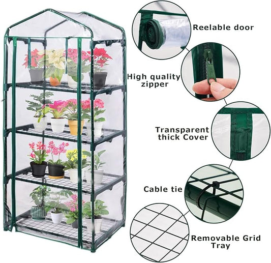Mini Greenhouse for Indoor Outdoor, Plant Green House 4-Tier Rack Stand Portable Greenhouses with Durable PVC Cover for Seedling, 2.5x1.6x5.2 FT,Ideal Gardening Gifts for Women Men(PLGH704P)