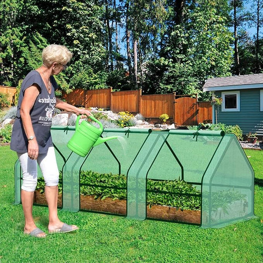 BPS 9x3x3 ft Mini Greenhouse with Green PE Cover UV-Protected Roll-Up Zipper Doors, Ideal for Indoor or Outdoor Use on Raised Garden Beds