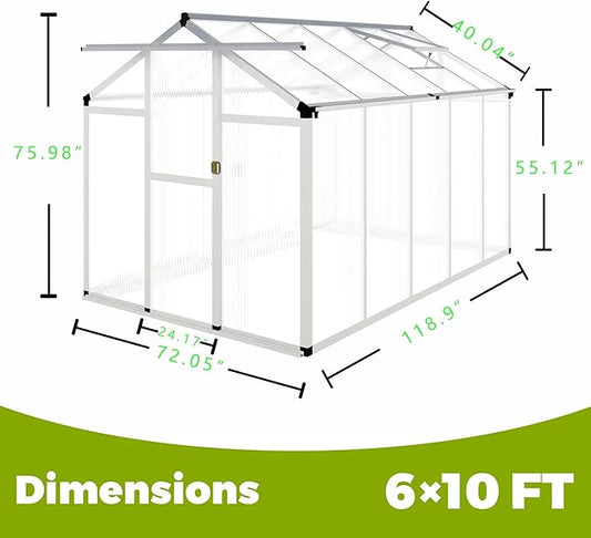 6 x 10FT Greenhouse for Outdoors,Polycarbonate Garden Backyard,Silver