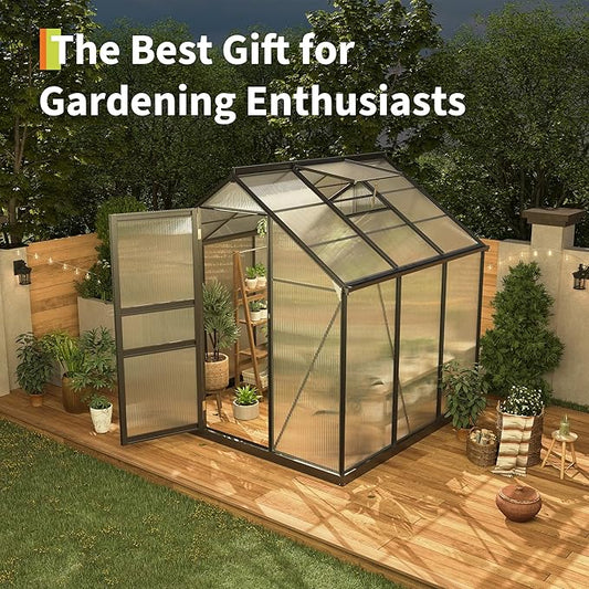 6 x 6FT Greenhouse for Outdoors,Polycarbonate Garden Backyard,Silver