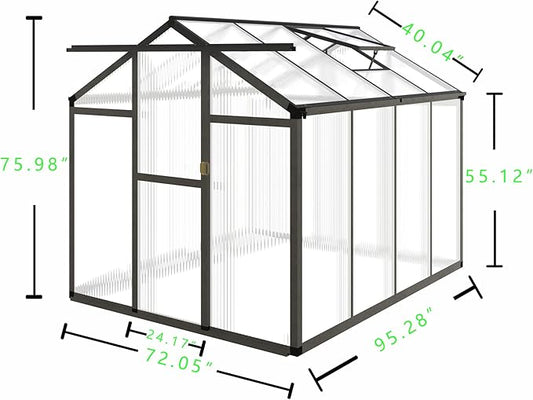 CQZY 6x8 FT Greenhouse for Outdoors,Walk-in Greenhouse for Outdoors,Dark Gray
