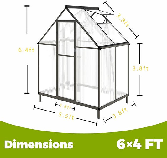 6 x 4 FT Greenhouse for Outdoors,Aluminum Large Walk-in Greenhouse,Dark Gray