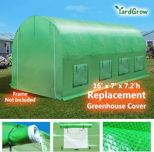 YardGrow Greenhouse Replacement Cover Larger Walk in Outdoor Plant Gardening Greenhouse (Frame Does NOT Included) (Green, 16'x7'x7')
