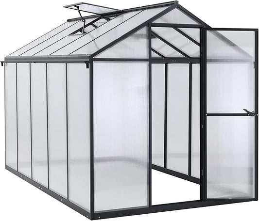 Jocisland 6x8x6.3 FT Polycarbonate Greenhouse for Outdoors with 2 Windows, Dual Swing Doors, Aluminum Walk-in Frame, Heavy Duty Garden Greenhouse for Backyard, Black