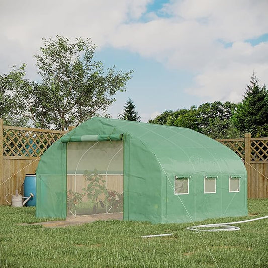 Outsunny 11.5' x 10' x 6.5' Walk-in Tunnel Greenhouse, Green House with Zippered Mesh Door, 7 Mesh Windows & Roll-up Sidewalls, Upgraded Gardening Plant Hot House with Galvanized Steel Hoops, Green