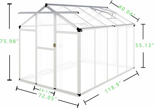 6'x9' Aluminum-Framed Polycarbonate Greenhouse, Heavy Duty Polycarbonate Greenhouse with Quick Setup Structure and Roof Vent, Large Enhanced Aluminum GreenhouseKit for Outdoors