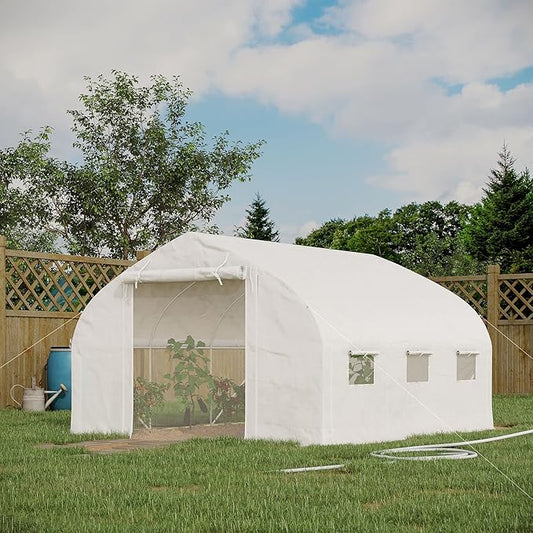 Outsunny 11.5' x 10' x 6.5' Walk-in Tunnel Greenhouse, Green House with Zippered Mesh Door, 7 Mesh Windows & Roll-up Sidewalls, Upgraded Gardening Plant Hot House with Galvanized Steel Hoops, White