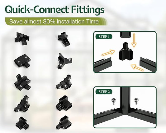 Jocisland 14x9.5x9 FT Outdoor Aluminum Greenhouse with Quick Connect Fittings, 6 FT Height Double Doors with Hook, Polycarbonate Walk-in Greenhouse for Backyard, Black