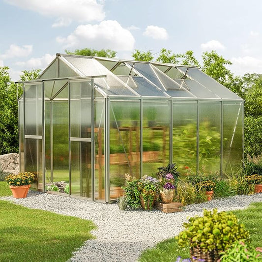 6'x9' Aluminum-Framed Polycarbonate Greenhouse, Heavy Duty Polycarbonate Greenhouse with Quick Setup Structure and Roof Vent, Large Enhanced Aluminum Green House Kit for Outdoors
