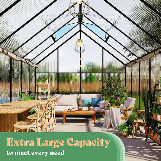 Garvee 6x10 FT Greenhouse - Aluminum Greenhouses for Outdoors, Large Polycarbonate Greenhouse with Roof Vent, Heavy Duty Walk-in Green Houses for Outside Garden, Backyard, Patio, Lawn, Easy Assembly