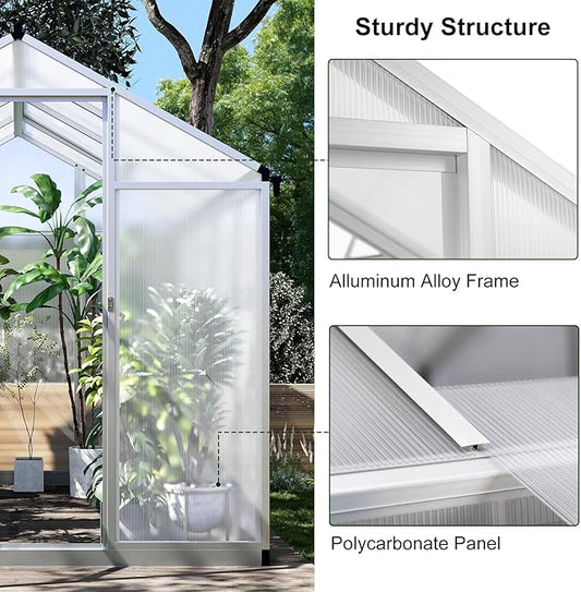 Garvee 6x8 FT Greenhouse - Aluminum Greenhouses for Outdoors, Large Polycarbonate Greenhouse with Roof Vent, Heavy Duty Walk-in Green Houses for Outside Garden, Backyard, Patio, Lawn, Easy Assembly