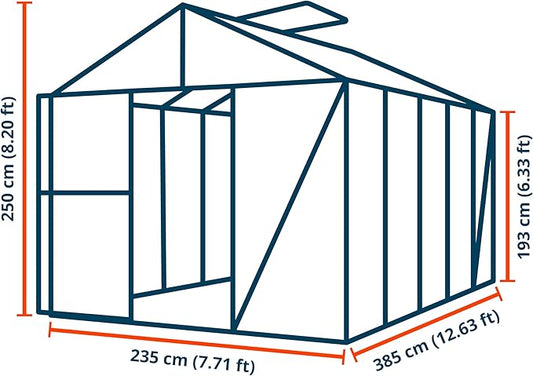 Greenhouse Diamas 23 Premium 7.7 x 12.6 ft with Approx. 16 mm Polycarbonate Panels, Natural Aluminum Color, with 2 Automatic Vent Openers