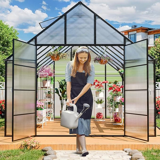 8x10 FT Greenhouse for Outdoors, Polycarbonate Flower Greenhouse with Roof Vent, Push-Pull Lockable Door, Aluminum Walk-in Greenhouses for Outside Garden Backyard, Patio, Lawn, Black