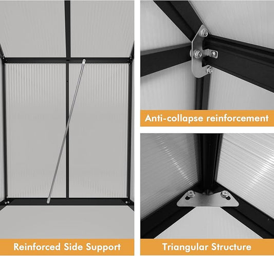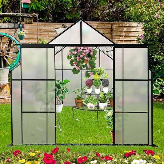 Aluminum Polycarbonate Greenhouse for Outdoors, Large Walk-InGreenhouse With Quick Setup Structure and Roof Vent, Greenhouse With Ventilation
