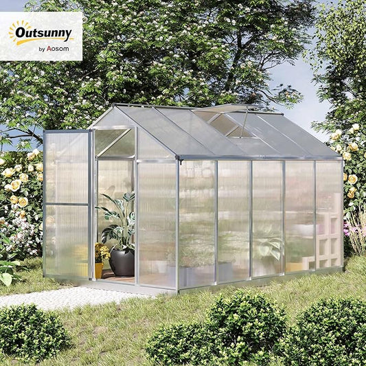 Outsunny 10' x 6' Greenhouse for Outdoors, Polycarbonate Greenhouse with Rain Gutter and Roof Vent, Aluminum Walk-in Green Houses for Outside Patio Backyard Garden