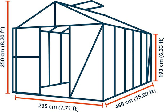 Greenhouse Diamas 24 Premium 7.7 x 15.1 ft with Approx. 16 mm Polycarbonate Panels, Natural Aluminum Color, with 2 Automatic Vent Openers