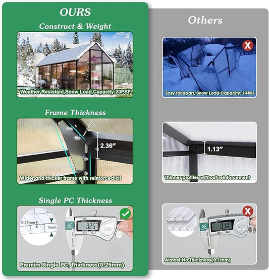 Greenhouse, 10.3x6.2 FT Upgraded Hybrid Polycarbonate Greenhouses for Outdoors w/2 Vent Windows & Swing Door Walk-in Greenhouses Aluminum Green House for Garden Backyard, Easy to Install