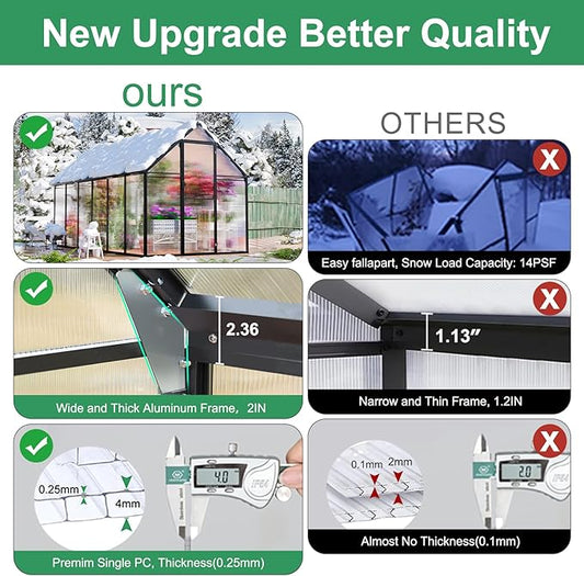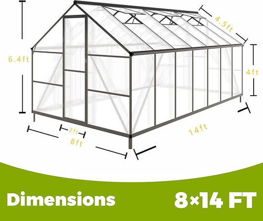 8x14 FT Greenhouses for Outdoors, Polycarbonate Greenhouse with PC Panels, Greenhouses for Outdoors for Yard, Garden, Hobby, Dark Grey