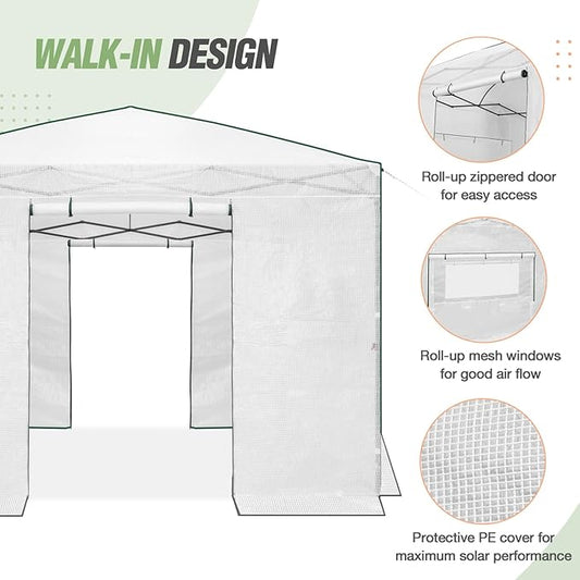 EAGLE PEAK Replacement Cover for 10x10 Portable Walk-in Pop up Greenhouse, Front Roll-Up Zipper Entry Door and 2 Large Roll-Up Side Windows (Frame Not Included), White
