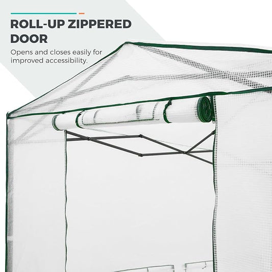 EAGLE PEAK Replacement Cover for 8x6 Portable Walk-in Pop up Greenhouse, Front and Rear Roll-Up Zipper Entry Doors and 2 Large Roll-Up Side Windows (Frame Not Included), White