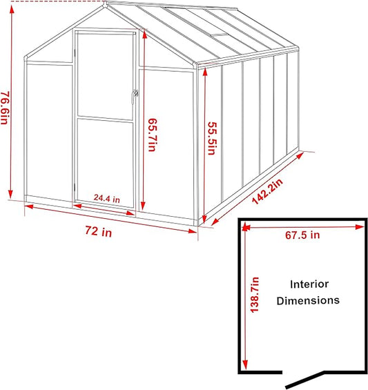 HOWE 8x8x7.5 FT Aluminum Greenhouses for Outdoors,Polycarbonate Greenhouse with 2 Vents Lockable Swing Door Rain Gutter,Walk-in Greenhouse for Backyard Plants, Black