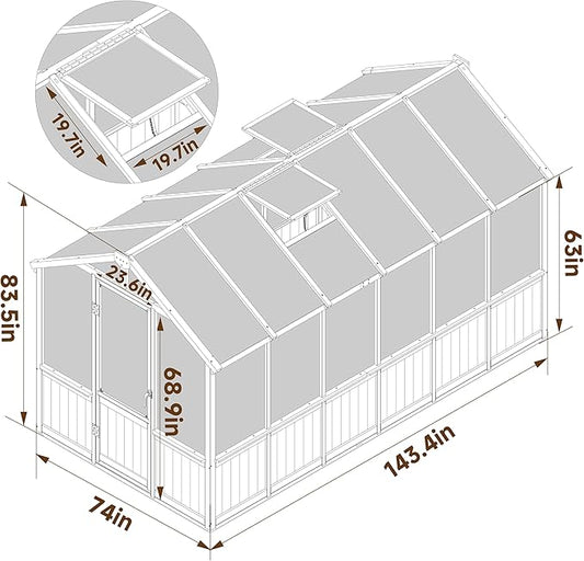 6' x12' Double-Wall Polycarbonate Aluminum Greenhouse Kit for Outdoor, Walk-in Greenhouse with Lockable Door and Adjustable Roof Vent, Backyard Garden in Winter, White