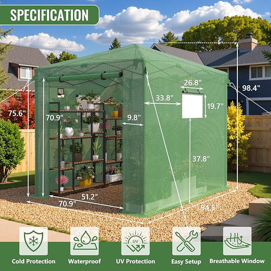 8X6 FT Pop Up Greenhouse,Greenhouse for Outdoors, Portable Walk-in Greenhouses with Roll-Up Zipper Door, PE Cover Greenhouses for Garden and Backyard, Easy Setup