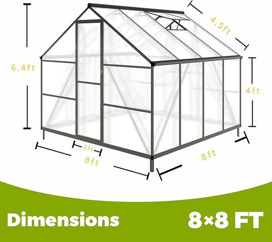 8x8 FT Greenhouses for Outdoors, Polycarbonate Greenhouse with PC Panels, Greenhouses for Outdoors for Yard, Garden, Hobby, Dark Grey
