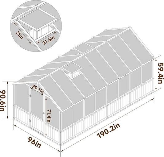 6'x8' Snap-Together Greenhouse - Easy 3-Way Connectors, Heavy-Duty Aluminum Frame, Wind/Snow Resistant for Gardening/Urban Farming, Includes Sliding Door and Ventilation Windows