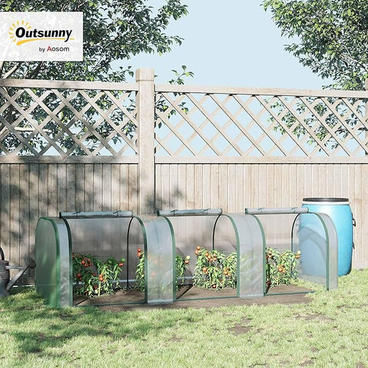 Outsunny 11' x 3' x 2.5' Mini Greenhouse, Portable Tunnel Green House with Roll-Up Zippered Doors, UV Waterproof Cover, Steel Frame, Clear