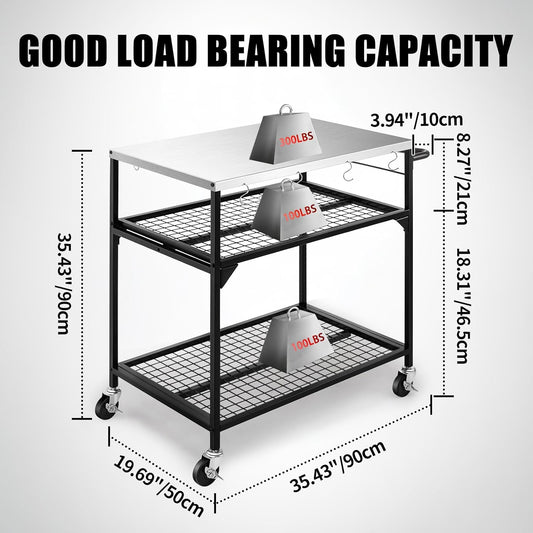 Spurgehom Outdoor Grill Cart, Pizza Oven Stand Table with Stainless Steel Top Movable Kitchen Cooking Prep Table BBQ Cart Kitchen Prep