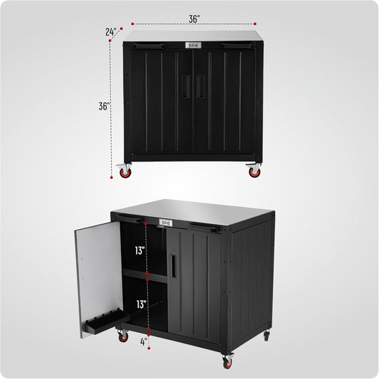 Grill Table, Outdoor Bar Cart Grill Cart with Storage Cabinet,Modular Outdoor Kitchen Island, Outdoor Grill Station with 304 Stainless Steel Top,Pizza Oven Table for Lawn & Garden,L35.4” x W24”