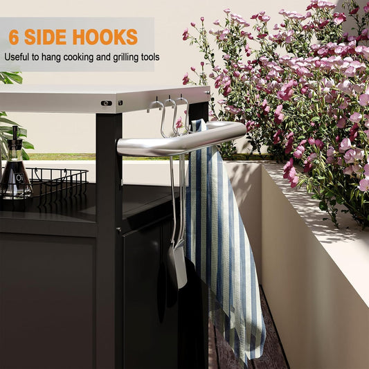 Outdoor Grill Cart with Storage Cabinet Stainless Steel Prep Stand with Storage Cabinet and Wheels Movable Whole Portable Table Outdoor Rolling Prep Station Kitchen Island Pizza Oven Table for Garden