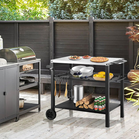 only fire Stainless Steel Movable Dining Cart Table, Pizza Oven Table, Multifunctional Utility Cart with Wheels for Outdoors, Kitchen or Backyard Patio