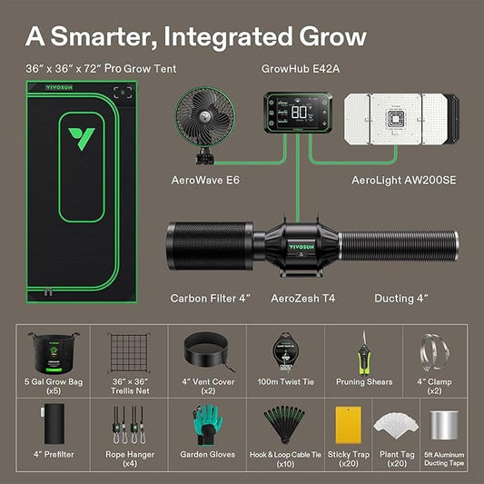 VIVOSUN GIY Plus Smart Grow Tent Kit, 4x2ft 2-Plant System, WiFi-Integrated Automatic Grow System with 2000D Mylar Grow Tent, Full-Spectrum Programmable Grow Light, Enhanced Ventilation & Circulation