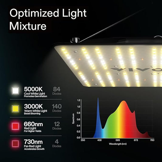 VIVOSUN 2 x 2 ft. Grow Tent Kit Complete, 24"x24"x48" Grow Tent Complete System with VS1000 Led Grow Light, 4 Inch 190CFM Inline Fan, Carbon Filter and 8ft Ducting Combo