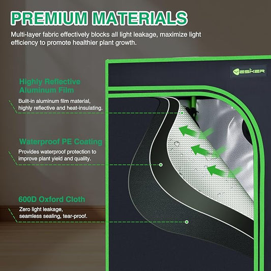 Yesker 2x2 Grow Tent 24"x24"x48" High Reflective Mylar Small Indoor Growing Tents 600D Oxford Cloth with Observation Window and Removable Floor Tray for Hydroponics Indoor Plants Fruit Flower Growing