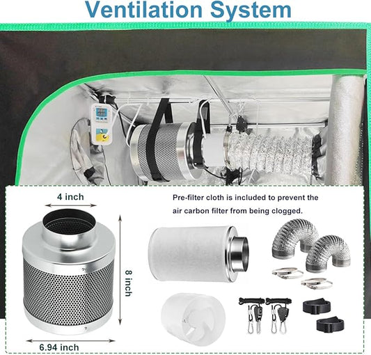 Grow Tent Kit Complete System High Reflective Mylar Indoor Grow Tent Hydroponics Growing Tent with Full Spectrum LED Grow Light Observation Window, Ventilation Fan,Carbon Filter (48" x 48" x 80")