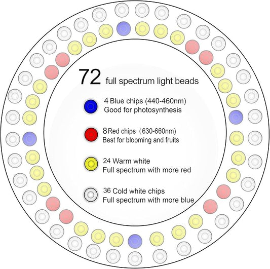 Full Spectrum Grow Light for Indoor Plants, 72 LEDs Halo Plant Light with Auto On/Off Timer (4/8/12H), 10-Level Brightness, 3 Lighting Modes, for Small Plants & Seedlings (White, One Head)