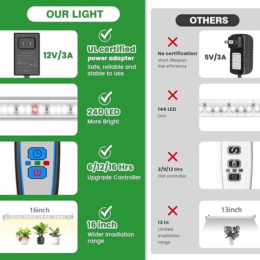 Wiaxulay LED Plant Grow Light Strips, 6000K White Grow Lights for Indoor Plants Full Spectrum, 3 Bars/16 in Grow Lamp with 6/12/16 Hrs Timer, 5 Brightness for Green House, Hydroponics, Seed Starting