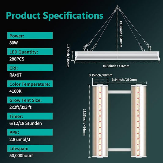 JESLED 80W Full Spectrum Plant Growing Lights with Timer, Plug in Suspended Fixture for 2x2/3x3ft Grow Tent Room, Greenhouse Cultivation, Laboratory Plant Cultivation, 1.4FT