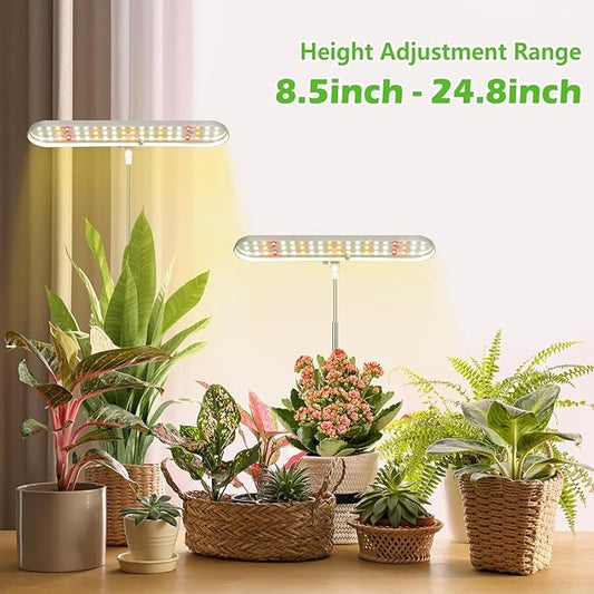 LORDEM Ceiling Grow Light for Indoor Plants, 96 LEDs Full Spectrum LED Plant Light, 5V Plant Lamp with 4/8/12H Auto Switch, 4 Dimmable Brightness Levels, Ideal for Small Plants, Dual Head, Corded