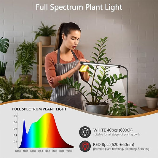 Plant Grow Light, 48LEDs Full Spectrum Grow Lights for Indoor Plants, Height Adjustable Grow Lamp with Base, 3 Optional Spectrums, 3/9/12Hrs, 10 Brightness, Ideal for Small Plants, 1 Pack