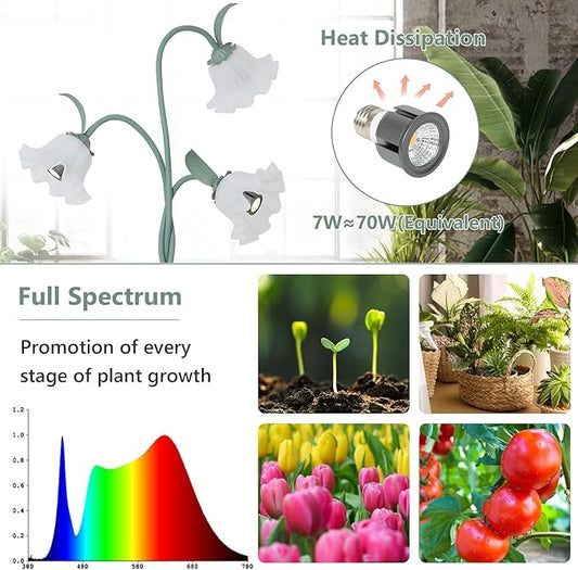 HMVPL Grow Lights for Indoor Plants, Full Spectrum Plant Lights for Indoor Growing with 3 7W Grow Light Bulbs, Foot Switch, Standing Tall Growth Lamp with Flexible Gooseneck for Middle Small Plants