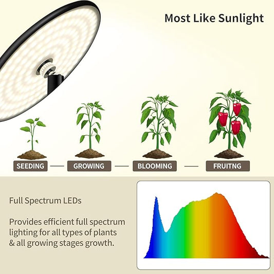 Smart Grow Lights for Indoor Plants,24W Plant Light with Auto-Timer,Full Spectrum LED Grow Light, Adjustable Height & Stepless Dimming,Plant Assistant Suitable for Most Plants (Black, 24W)